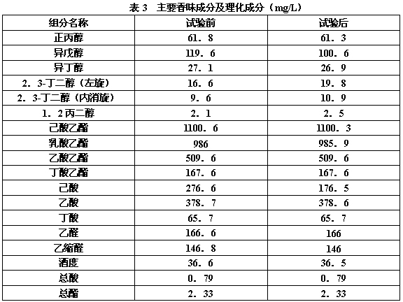 表2、表3的試驗結果表明,天然甜味汁對低度濃香型白酒的雜味有掩蓋作用,可使酒體醇厚、綿甜、香味協調。主要理化成分如酒度、總酸、總酯含量無變化。