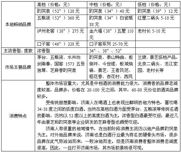 在魯酒復興的大前提下,濟南作為省會城市的戰略性地位日益重要。受主流魯酒企業紛紛搶灘濟南市場,魯酒板塊整體產品價格提升和品牌策略的調整及其消費多元化趨勢的影響,濟南白酒市場正在經歷著由量的增長向質的提高的深度調整期。