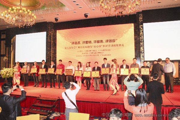 另外,還評選出“最佳美譽獎”、“最佳口感獎”、“最佳品牌獎”、“最具影響力獎”、“特別貢獻獎”等獎項。同時,廣州市糖煙酒連鎖有限公司、鄭楚波等一批企業和個人還分別榮獲“廣州酒類市場放心酒誠信經營企業”和“廣州酒類行業十大人物”光榮稱號。