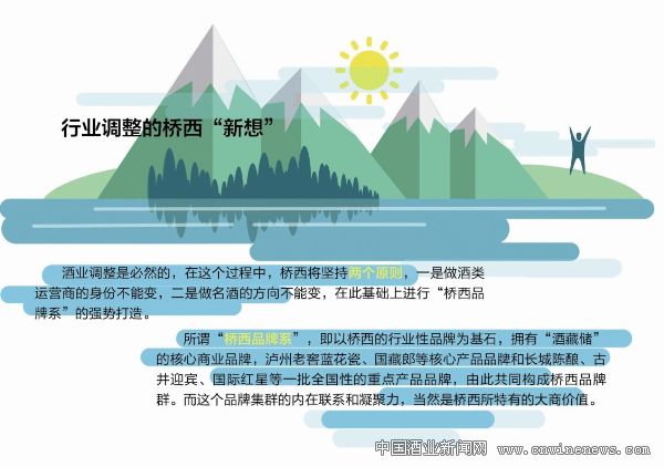 “我認為酒行業近期以來的變化都很正常,大家都說是宏觀環境不好,我認為主因還是出在行業本身,比如產能過剩、產品不適應市場需求等問題,調整是必然的。”趙新想表示,在這個過程中,橋西將堅持兩個原則,一是做酒類運營商的身份不能變,二是做名酒的方向不能變,在此基礎上進行“橋西品牌系”的強勢打造。