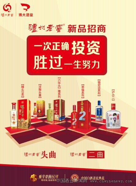今天,瀘州老窖博大酒業深究市場,原創推出的“過節的味道”聚焦節慶情感營銷、“幸福啟航”深度掘金宴席市場,以及為各主力產品量身打造的“開鴻運贏未來”吉慶文化、“六六順”喜酒文化、“想得開玩得嗨”的快樂文化已成為大眾消費的熱點,標志著“民酒”價值消費昌盛景象的回歸,體現博大酒業推進社會文明進步的時代正能量。