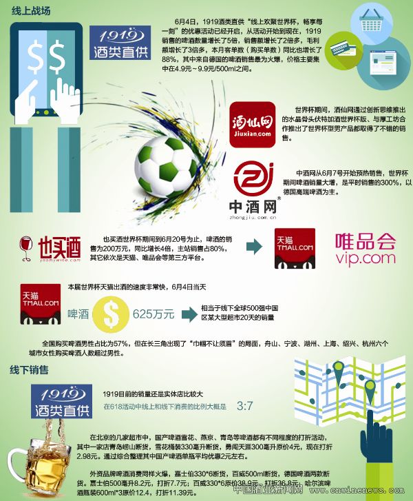 與時間賽跑的線上戰場 6月13日,2014年巴西世界杯正式開幕,但是早在6月4日時,1919酒類直供(以下簡稱1919)線上“歡聚世界杯,暢享每一刻”的優惠活動就已經開啟了。