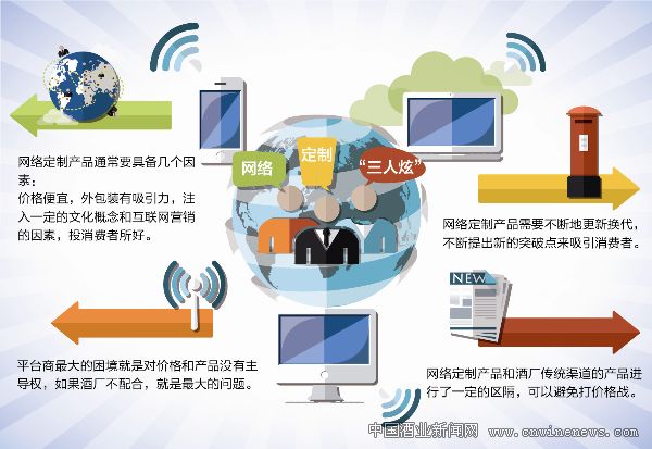 而尊重消費者意見,尋求消費者積極參與互動的最好平臺便文章來源華夏酒報是互聯網,所以網絡成為定制酒的一個重要銷售通道。