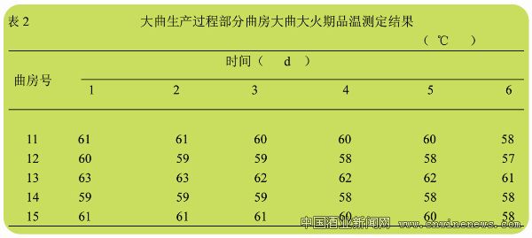 從表2可看出,這幾房大曲大火期溫度均在60℃左右,并維持5天—7天。