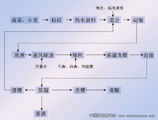 2.1 宣酒芝麻香酒生產工藝流程(見圖表)