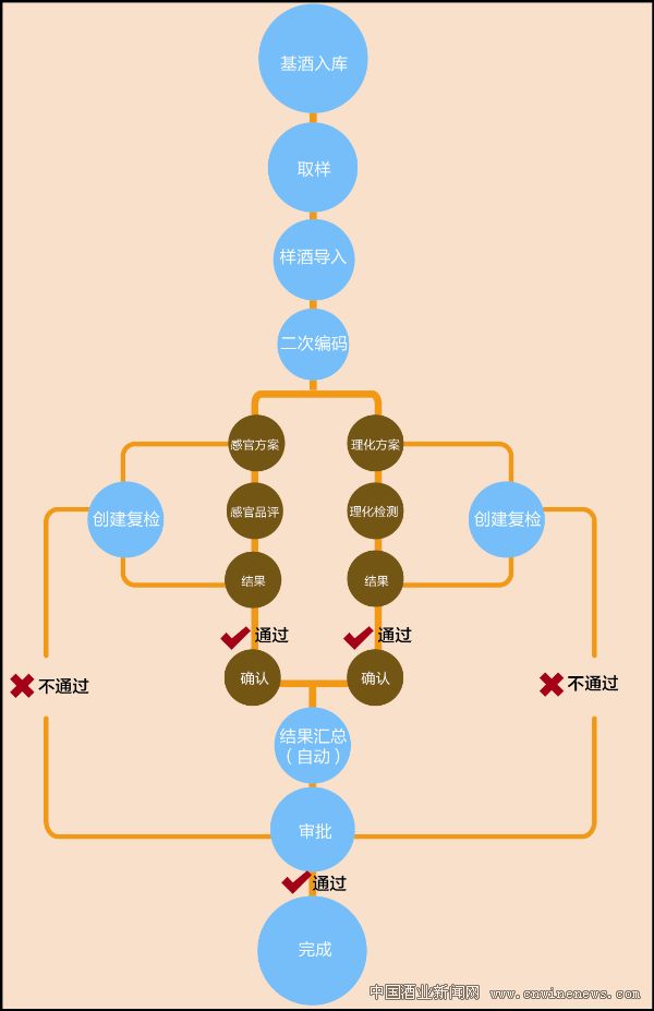 白酒企業屬于食品加工行業,從原輔材料入廠到成品酒出廠需要很多道工序。為了有效地滿足市場對白酒質量的要求,必須對各個過程進行嚴格質量控制。而鑒于酒類的特殊性,在基酒入缸貯存之前,需要對其進行綜合評價。