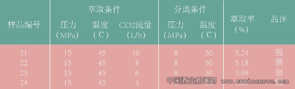 從表8可以看出,13號(hào)樣品萃取率高且風(fēng)味好,因此萃取壓力確定為15MPa。
