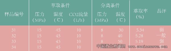 從表10可以看出,分離溫度越低,萃取率越高,但品質(zhì)不好,所以分離溫度選取為50℃。
