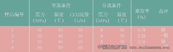 通過以上試驗(yàn)可以看出,3號(hào)樣雖然萃取率略低于2號(hào)樣,但其風(fēng)味更佳,所以萃取溫度選為45℃。