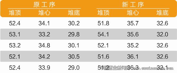 由表4可知,改進后有利于發酵酒醅,提早結束有氧糖化升溫階段,增加厭氧發酵產香階段。