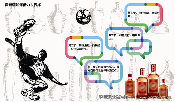 就像錘子科技CEO羅永浩說的,如今最打動人的是什么?是情懷!這是超越商業競爭的營銷,保健酒借助世界杯營銷的唯一特色,就是情懷,對消費者的持續關注的情懷,對健康的持續倡導,發掘自身的核心特質,借力世界杯營銷才是王道,而其他諸如線上互動、終端促銷只是外在的表現形式,針對消費者的持續關懷和需求挖掘,類似保健酒的型男酒也就不遠了。