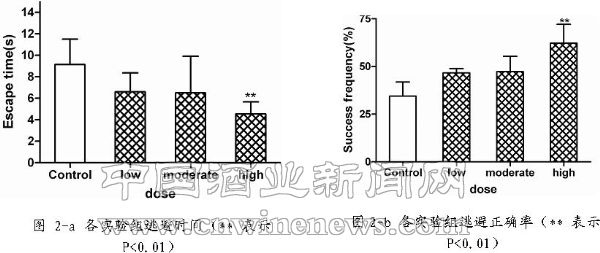 用Y-型電迷宮研究黃酒對SD大鼠學習記憶能力的影響。大鼠灌喂黃酒30天后,逃避電刺激所用的時間縮短,逃避的正確率提高,證實黃酒能提高大鼠學習記憶能力,且與劑量有關。黃酒能提高大鼠學習記憶能力可能與酒中豐富的γ-氨基丁酸、生物活肽、氨基酸、礦物質微量元素及維生素等多種營養物質有關(見圖2-a、2-圖 2-b)。