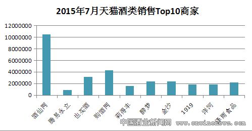 明細顯示,今年天貓文章來源中國酒業新聞網酒類銷售TOP 10商家分別是(按銷售額遞減):酒仙網官方旗艦店,騰易永立酒類專營店,也買酒官方旗艦店,購酒網官方旗艦店,莉得豐酒類專營店,醉夢酒類專營店,金沙酒類旗艦店,壹玖壹玖官方旗艦店,洋河官方旗艦店,澤雨食品專營店。