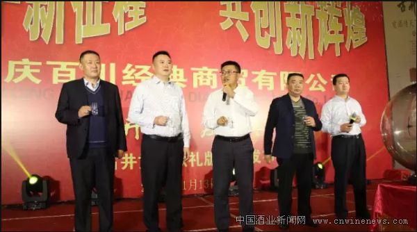 11月13日,安徽百川商貿(mào)發(fā)展有限公司與安慶經(jīng)典商貿(mào)公司、安慶兆平商貿(mào)有限公司戰(zhàn)略合作發(fā)布會在安慶南翔邦臣大酒店舉行。發(fā)布會由安慶百川經(jīng)典商貿(mào)有限公司銷售總監(jiān)姚剛主持,安徽百川商貿(mào)發(fā)展有限公司董事長賈光慶先生、亳州古井銷售有限公司董事長閆立軍分別做重要講話。