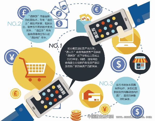 11月5日, “酒快到”與全國酒行業連鎖品牌“酒立方”共同宣布,正式達成戰略合作聯盟。雙方將依托酒行業互聯網+傳統實體店的銷售渠道網絡,發揮雙方實力基礎和優勢,深入挖掘和引導消費者,發展新常態下的酒行業新型升級之路。