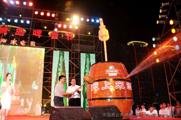 8月18日晚8點,貴陽市金陽世紀金源購物中心廣場變成一片歡樂的海洋,亞洲最大的啤酒盛會青島國際啤酒節移師貴陽華麗綻放。隨著貴州省人民政府副省長蒙啟良以及青島啤酒股份有限公司董事長金志國共同敲擊具有象征意義的“天上來酒”啤酒桶,大啤酒桶瞬間噴射的啤酒酒花四濺,首屆貴陽青島啤酒節在中國(貴州)酒類博覽會期間盛大開幕。