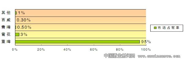 在重慶市場上,重啤占據絕對的壟斷地位。