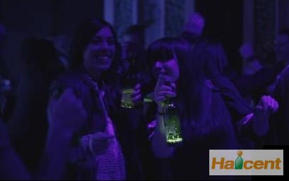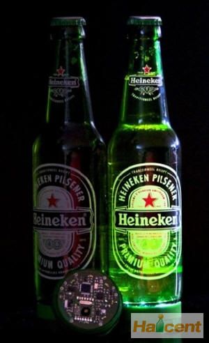當將酒瓶放下一會,那么它將自動進入休眠狀態,當被拿起時,它又會慢慢蘇醒。啤酒瓶的燈光還能夠通過遠程控制,讓酒瓶的閃爍與音樂的節拍一致,從而將舞會轉換為一個燈光秀。