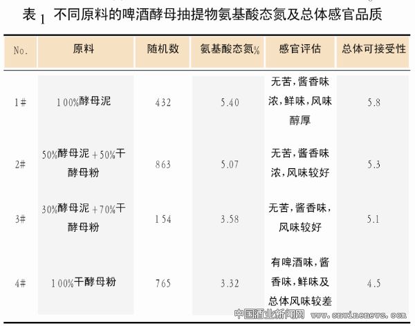 常見的啤酒酵母原料主要是啤酒酵母泥及啤酒干酵母粉兩種形式。其中,干酵母粉是啤酒酵母經過干燥后得到的。本文使文章來源華夏酒報用啤酒酵母泥與啤酒干酵母粉作為原料,對加入蛋白酶進行酶解后得到酵母提取物的質量指標進行了研究。