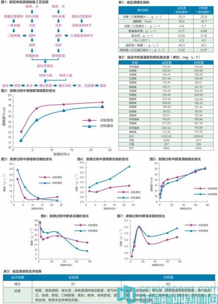 以新型淋飯酒母代替?zhèn)鹘y(tǒng)淋飯酒母,在傳統(tǒng)工藝黃酒生產(chǎn)車間進行釀酒試驗,配方和操作基本與正常生產(chǎn)相同。