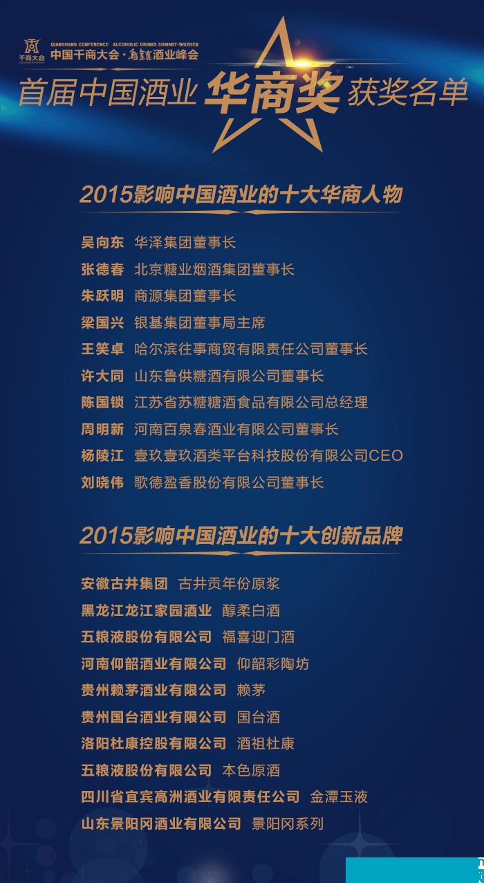 榜單|首屆中國酒業華商獎新鮮出爐
