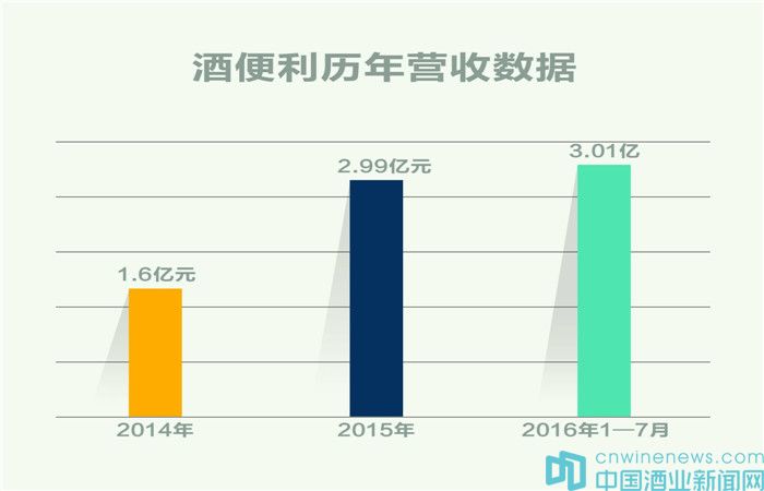 據(jù)酒便利提供的數(shù)據(jù),2016年1-7月,公司實(shí)現(xiàn)收入(含稅)達(dá)3.01億元,較2015年1-7月同比增長58.83%;這也意味著,截止7月底,酒便利的營收已經(jīng)超過了2015年全年的2.99億營收。