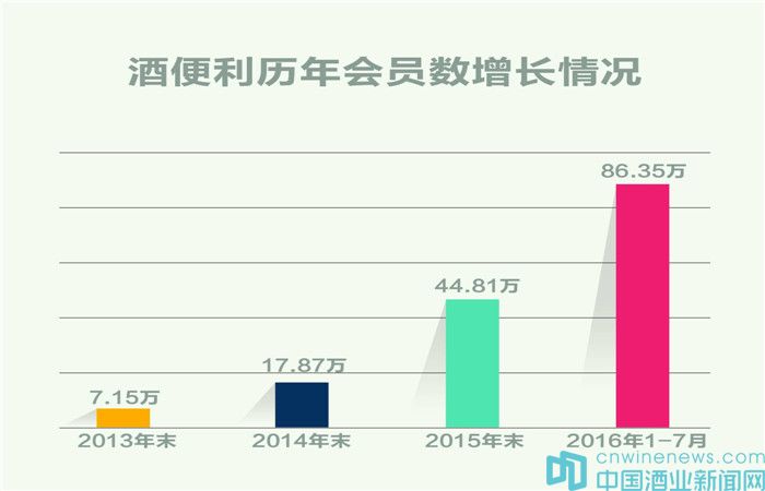 與此同時(shí),在過去的兩年中,酒便利的會(huì)員人數(shù)也實(shí)現(xiàn)了快速增長。截止2016年7月底,酒便利的會(huì)員數(shù)已超過86萬人,同比增長150.56%。其中河南市場會(huì)員數(shù)達(dá)68萬人,北京市場會(huì)員數(shù)超過18萬。據(jù)了解,2013末,酒便利會(huì)員人數(shù)為7.15萬人,2014年末會(huì)員人數(shù)為17.87萬人;2015年末會(huì)員人數(shù)為44.81萬人。