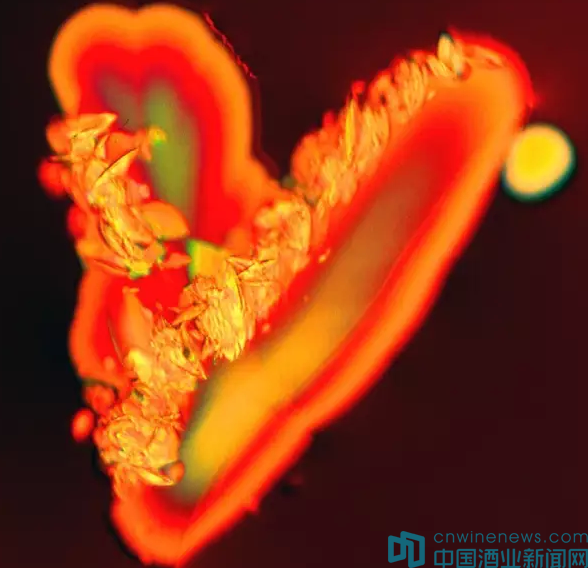 而她的照片比所有的葡萄酒大師的品酒記錄都更吸引人。載片上的小液滴放大后呈現出令人驚訝的顏色和形狀,如宏觀世界里的飛龍和綠寶石。這些藝術圖片是葡萄酒味道屬性的另一種方式的別開生面的記錄。酸度尖銳的長相思如一只易怒的海膽,而陳年梅樂是薄層上柔軟的一抹痕跡。Barrett在研討會上分享了一個脾氣不太好的釀酒師的故事,她說這個釀酒師的酒從分子角度來說,體現了憤怒的能量。