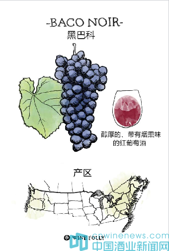 其他:黑巴科由歐洲葡萄和美洲葡萄雜交而成,誕生于1902年,當時根瘤蚜摧毀了法國大部分葡萄園。黑巴科是一個抗根瘤蚜的品種,因此被種植于法國許多地方,但如今已經沒有了,因為它不是官方認可的品種。黑巴科廣泛種植于加拿大〔從不列顛哥倫比亞(British Columbia)到魁北克省(Quebec)〕,這里所釀造的葡萄酒最好在采摘年份后的4-6年間開瓶飲用。