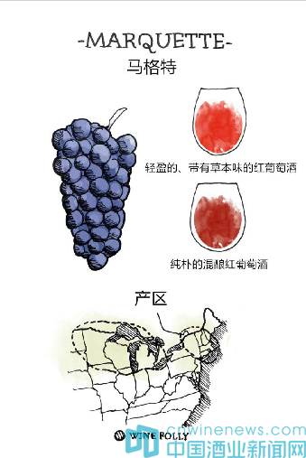 其他:該品種是最強壯的冷涼氣候雜交葡萄之一,誕生于2006年,由明尼蘇達大學培育而成。用該品種釀造的葡萄酒酸度極高,但單寧含量低,酒體輕盈,帶有尖酸、純樸的特征。有些釀酒商會把馬格特葡萄酒置入橡木桶中進行陳年,以柔化酒的酸度,賦予其更多的巧克力風味。
