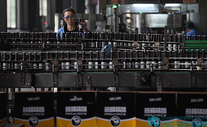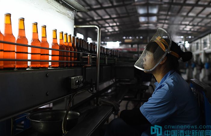 4月15日,一位工作人員在位于湖南益陽的“熊貓精釀”裝瓶車間里工作。