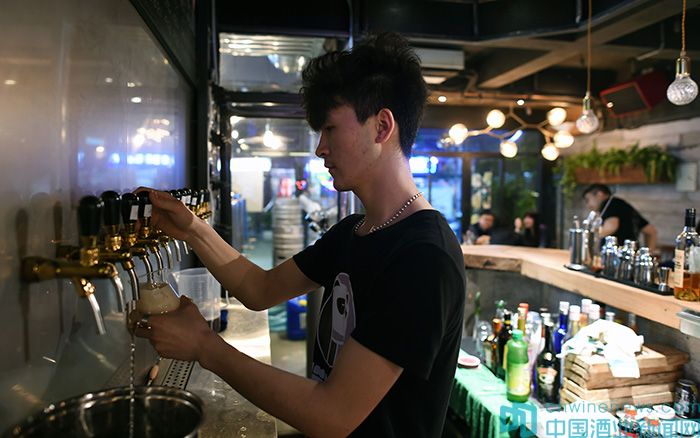 4月16日,在“熊貓精釀”長沙門店里,一位工作人員在為顧客倒上一杯“熊貓精釀”鮮啤。