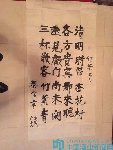2015年夏,汾酒集團董事長李秋喜先生到秦老家看望秦老,期頤老人仍非常關心汾酒的發(fā)展,并為汾酒題詩。