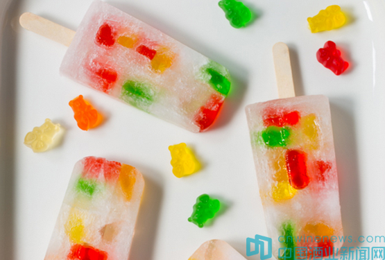 將小熊糖倒入伏特加中浸泡至少24小時,充分吸收酒味,將泡好的小熊糖和伏特加均勻放進冰格里四分之一滿,倒入雪碧在冰格里混合均勻到二分之一滿,放入冰箱凝結成塊,然后再均勻加入四分之一冰格量的小熊伏特加并用雪碧混合成整個冰棍,冰凍一夜。