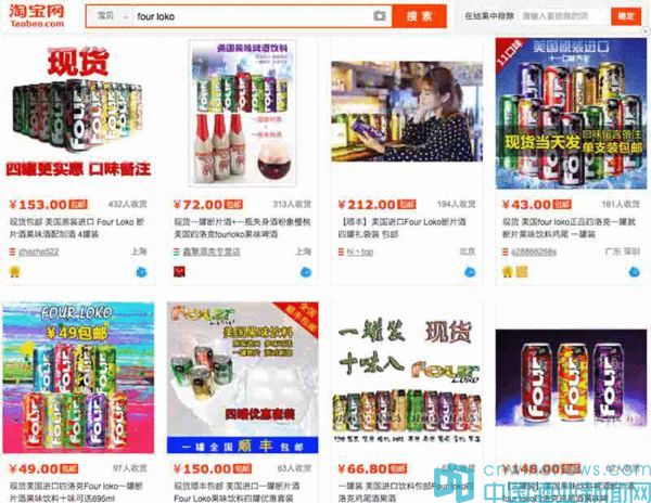 淘寶上搜索Four Loko仍能顯示許多熱銷商家