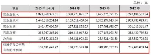 業(yè)績方面,招股書顯示,2014年西鳳酒實現(xiàn)營收33.21億元,實現(xiàn)歸屬于母公司所有者的凈利潤為1.3億元。2015年1-9月實現(xiàn)營收18.93億元,實現(xiàn)歸屬于母公司所有者的凈利潤為1.08億元。