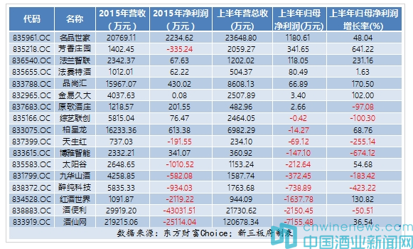 目前新三板酒業盈利能力排名第一的名品世家,2016年上半年公司實現營業收入 2.36億元,同比增長371.53%;實現凈利潤 1180.61萬元,比上年同期增長 48.04%。