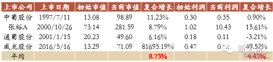 如果把上市以來市值和凈利潤年復合增長率高于10%作為一個衡量的指標,我們發現白酒行業中有5家,分別為瀘州老窖(000568)、五糧液(000858)、貴州茅臺、老白干酒(600559)和洋河股份(002304),在13家2014年之前上市的公司中,占比達到38.46%。黃酒行業中有1家,占比為50%;而啤酒和葡萄酒行業中一家也沒有,占比分別為0%。也就是說黃酒和白酒出現牛股的概率都在38%以上,而啤酒和葡萄酒所有上市公司從來沒有出現過牛股。