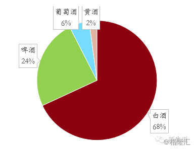 圖五:白酒、啤酒、葡萄酒和黃酒的占比