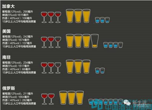 作為與法國鄰家的德國,風格卻截然相反,幾乎是世界人均消費啤酒最高的國家,15歲以上的人口平均每周消費2330毫升的啤酒。澳大利亞、新西蘭、加拿大、美國、南非等國家均以消費啤酒為主。