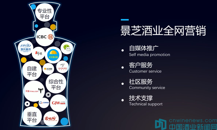 百億征程離不開營銷模式創(chuàng)新,景芝酒業(yè)2017年互聯(lián)網(wǎng)戰(zhàn)略發(fā)布。自2011年成立電子商務(wù)部,景芝酒業(yè)以互聯(lián)網(wǎng)思維推動組織、技術(shù)、模式創(chuàng)新,開啟了白酒+互聯(lián)網(wǎng)的產(chǎn)業(yè)新模式。憑借金融服務(wù)、平臺增值服務(wù)、技術(shù)服務(wù)輸出和PB戰(zhàn)略四個版塊,極優(yōu)佳營銷新平臺規(guī)劃在2019年實現(xiàn)整體盈利,并最終實現(xiàn)以品牌商、經(jīng)銷商、終端店、消費者為核心的極優(yōu)生態(tài)圈和以總部基地、云數(shù)據(jù)基地、創(chuàng)新孵化基地、智能物流基地為中心的極優(yōu)產(chǎn)業(yè)藍(lán)圖。