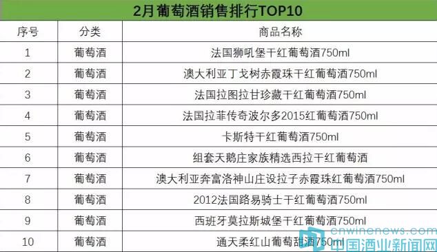 從具體榜單來看,法國獅吼堡干紅葡萄酒750ml*6、澳大利亞丁戈樹赤霞珠干紅葡萄酒整箱裝750ml*6、通天柔紅山葡萄甜酒750ml分列前三,其中通天柔紅山葡萄甜酒酒精度只有7度,也是上榜10款產品中唯一低于常規酒精度的產品。