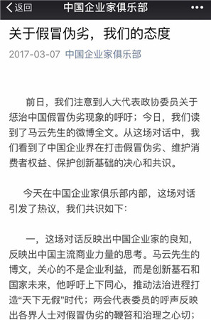 中國(guó)企業(yè)家俱樂(lè)部支持馬云打假