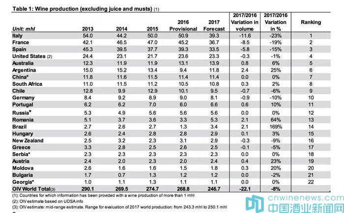 附:OIV全球主要葡萄酒產國產量數據圖