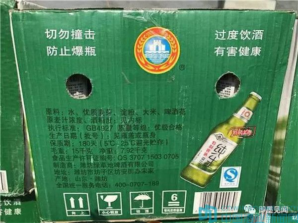 市北區市場監管局法制科科長張健鈞介紹,這些都是侵權啤酒。從啤酒外包裝上看,上面的商標標識仿照了青島啤酒的棧橋標識,外包裝的顏色圖案都設計得近似于青島啤酒,讓消費者不仔細看,很容易被蒙騙。此外,據執法人員了解,青島啤酒在濰坊并沒有設廠。