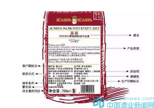 背標上的酒名必須產品屬性清晰。例如在名稱后面要加上“葡萄酒”或“起泡酒”字樣,表明產品屬性。