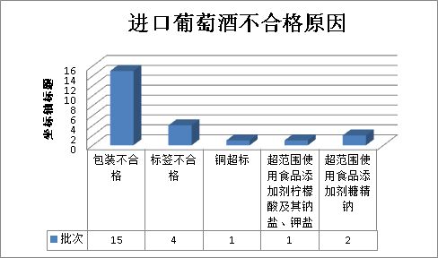 7月3日,國(guó)家質(zhì)檢總局發(fā)布《2017年5月未予準(zhǔn)入的食品化妝品信息》,其中23批次,15184.5千克進(jìn)口葡萄酒在入境檢測(cè)時(shí)發(fā)現(xiàn)不合格被銷毀或退貨。不合格產(chǎn)品主要來(lái)自法國(guó)、西班牙、葡萄牙、澳大利亞、南非、智利、意大利、亞美尼亞等8個(gè)國(guó)家或地區(qū)。不合格原因主要為包裝不合格,標(biāo)簽不合格,銅超標(biāo),超范圍使用食品添加劑檸檬酸及其鈉鹽、鉀鹽,超范圍使用食品添加劑糖精鈉。