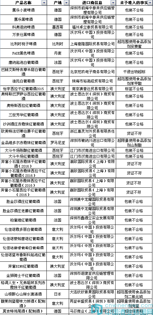 記者查閱未予準(zhǔn)入的信息,其中有35批次酒類不合格,詳見(jiàn)下圖。
