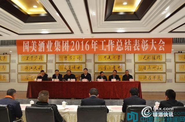 1月3日,國美酒業集團2016年工作總結表彰大會在國美酒業四川有限公司多功能廳隆重召開。國美酒業集團董事長武玉杰,國美酒業四川有限公司黨委書記、常務副總經理王冰,黨委副書記、總工程師杜峰,工會委員會主席、副總經理柳加潤、袁從杰、盧偉出席會議并在主席臺就座,公司全體員工參加會議。會議由公司副總經理王冰主持。
