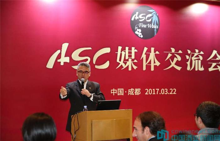 進入2017年以來,ASC精品酒業持續加強行業深耕與商業模式轉型,不斷給中國的美酒愛好者帶來新的驚喜。2017年春季糖酒會期間,ASC精品酒業首席運營總裁王俊先生(Simon Wang)、品牌部市場副總裁羅伯特•鄧波(Robert Temple)以及各地區總經理經理組成代表團,飛赴成都開展一系列葡萄酒品鑒交流活動,向消費者、媒體及經銷商合作伙伴介紹ASC精品酒業在過去一年中,于葡萄酒銷售及文化推廣事業上所取得的成果,以及對未來輝煌前景的展望。